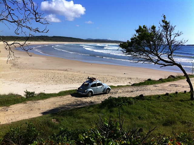 Well I’m still on my first tank of fuel, how goods that for economy? Next stop Bulahdelah! Never heard of it? A quaint, friendly little town on the banks of he Myall River, mid North Coast NSW. I cruised into town and parked the rocket outside the Plough Inn, did my shopping and had some lunch. By the time I got back to the rocket we had an audience, everyone wanting to know about the car, the driver and the journey, people reminiscing about what VWs they used to drive and what went on in the back seat. The car’s a magnet, people are always waving, it’s so cool.
